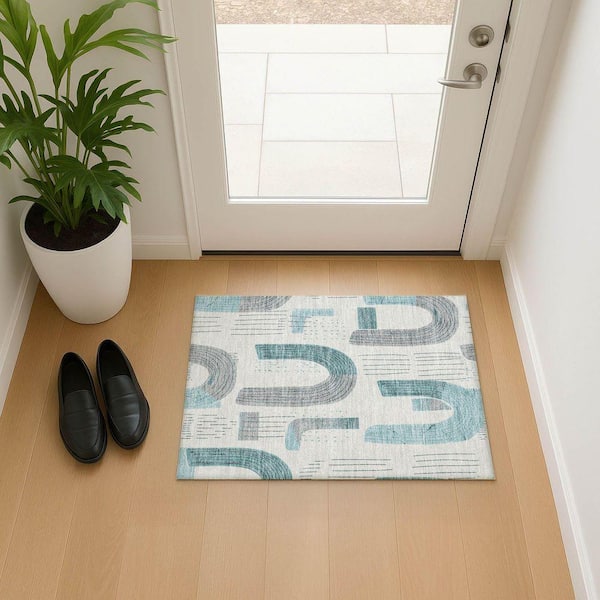Mayfield Premium Machine Washable Abstract AMF1698 Teal 2 ft. x 3 ft. Area Rug