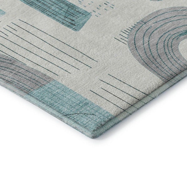 Mayfield Premium Machine Washable Abstract AMF1698 Teal 3 ft. x 5 ft. Area Rug