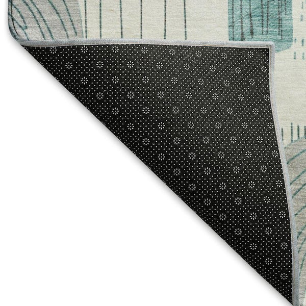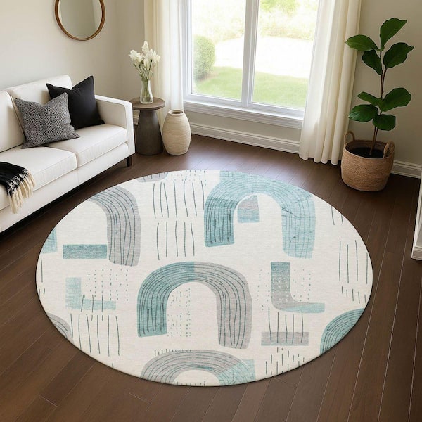 Mayfield Premium Machine Washable Abstract AMF1698 Teal 8 ft. x 8 ft. Round Rug