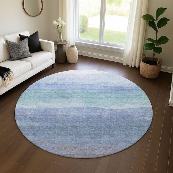 Mayfield Premium Machine Washable Abstract AMF1699 Blue 8 ft. x 8 ft. Round Rug