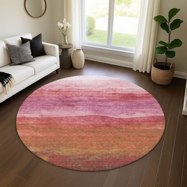 Mayfield Premium Machine Washable Abstract AMF1699 Blush 8 ft. x 8 ft. Round Rug