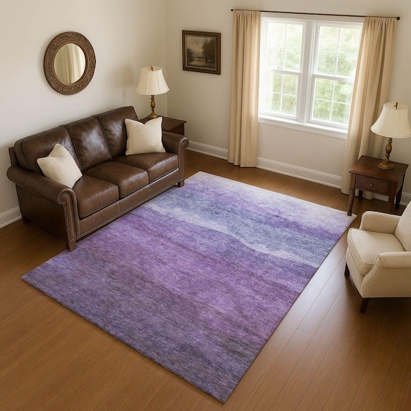 Mayfield Premium Machine Washable Abstract AMF1699 Purple 3 ft. x 5 ft. Area Rug