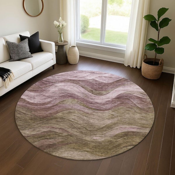 Mayfield Premium Machine Washable Abstract AMF1700 Taupe 8 ft. x 8 ft. Round Rug