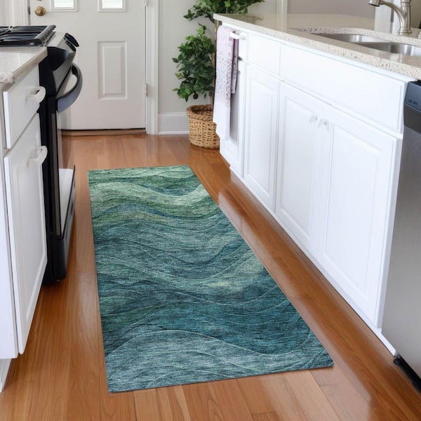 Mayfield Premium Machine Washable Abstract AMF1700 Teal 2 ft. 3 in. x 7 ft. 6 in. Runner Rug
