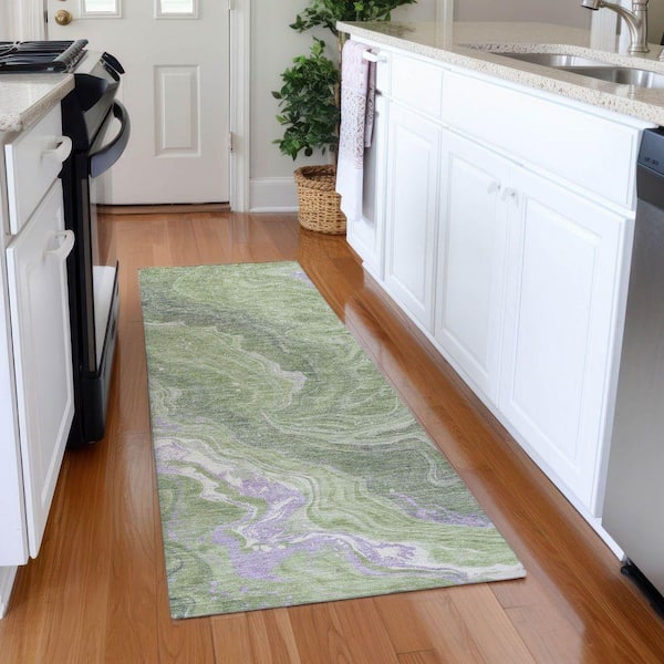 Mayfield Premium Machine Washable Abstract AMF1701 Aloe 2 ft. 3 in. x 7 ft. 6 in. Runner Rug