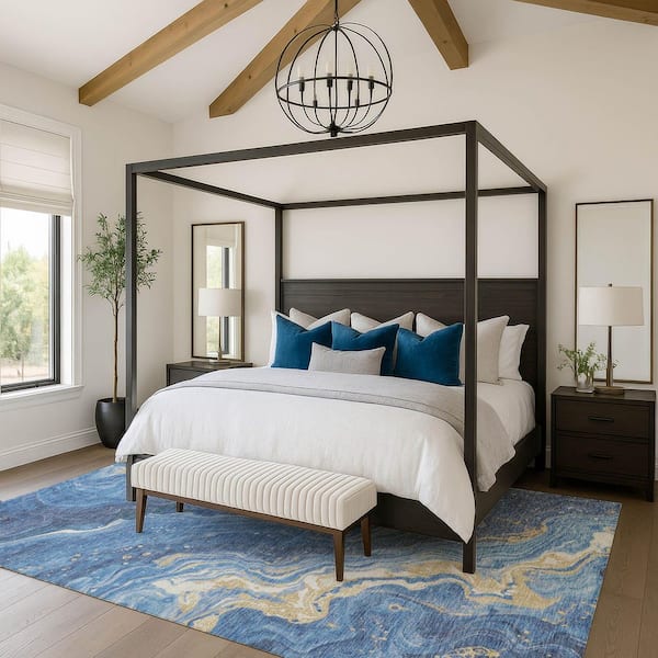 Mayfield Premium Machine Washable Abstract AMF1701 Blue 3 ft. x 4 ft. Area Rug
