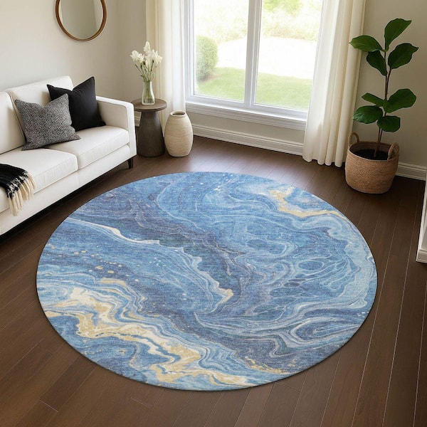 Mayfield Premium Machine Washable Abstract AMF1701 Blue 8 ft. x 8 ft. Round Rug