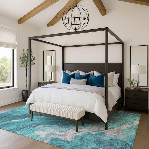 Mayfield Premium Machine Washable Abstract AMF1701 Teal 8 ft. x 10 ft. Area Rug