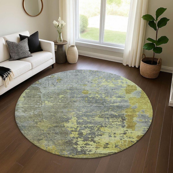 Mayfield Premium Machine Washable Abstract AMF1702 Cactus 8 ft. x 8 ft. Round Rug