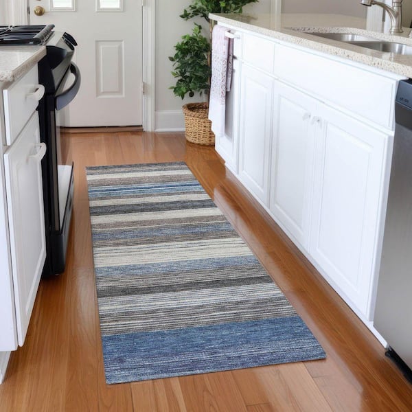 Mayfield Premium Machine Washable Abstract AMF1703 Denim 2 ft. 3 in. x 7 ft. 6 in. Runner Rug