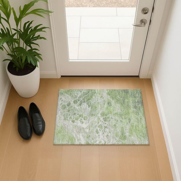 Mayfield Premium Machine Washable Abstract AMF1705 Aloe 2 ft. x 3 ft. Area Rug