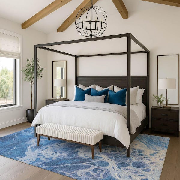 Mayfield Premium Machine Washable Abstract AMF1705 Navy 5 ft. x 7 ft. 6 in. Area Rug