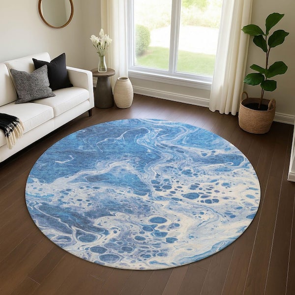 Mayfield Premium Machine Washable Abstract AMF1705 Navy 8 ft. x 8 ft. Round Rug