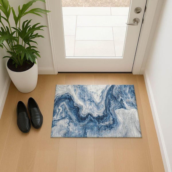 Mayfield Premium Machine Washable Abstract AMF1706 Navy 2 ft. x 3 ft. Area Rug
