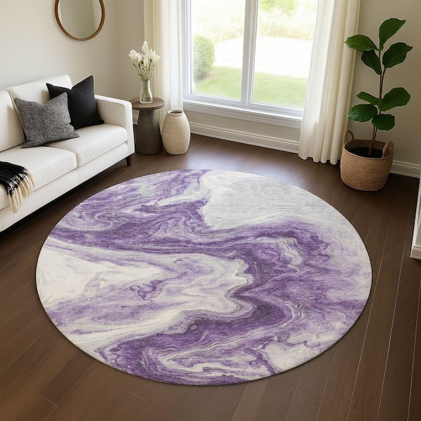 Mayfield Premium Machine Washable Abstract AMF1706 Purple 8 ft. x 8 ft. Round Rug
