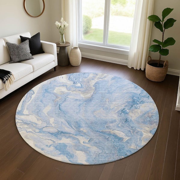 Mayfield Premium Machine Washable Abstract AMF1707 Blue 8 ft. x 8 ft. Round Rug