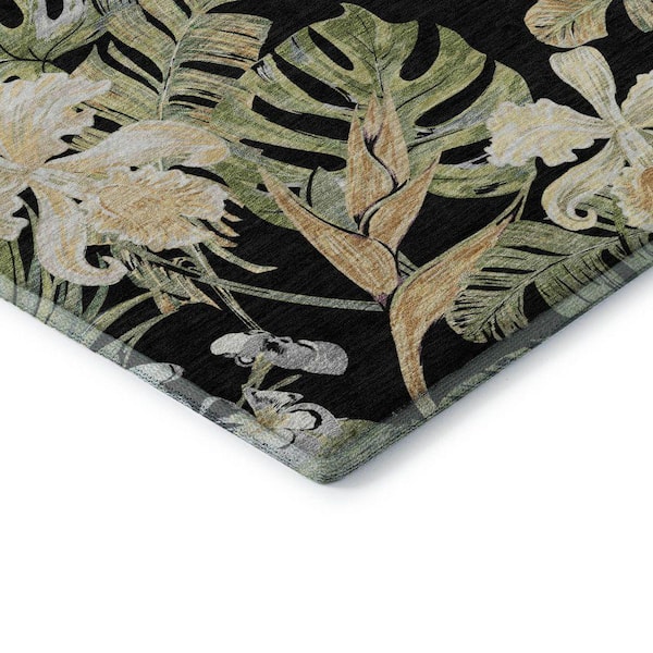 Mayfield Premium Machine Washable Abstract AMF1708 Black 5 ft. x 7 ft. 6 in. Area Rug