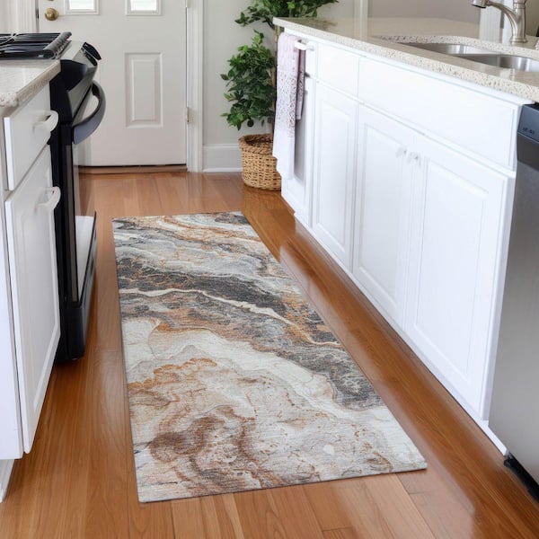 Mayfield Premium Machine Washable Abstract AMF1709 Silver 2 ft. 3 in. x 7 ft. 6 in. Runner Rug