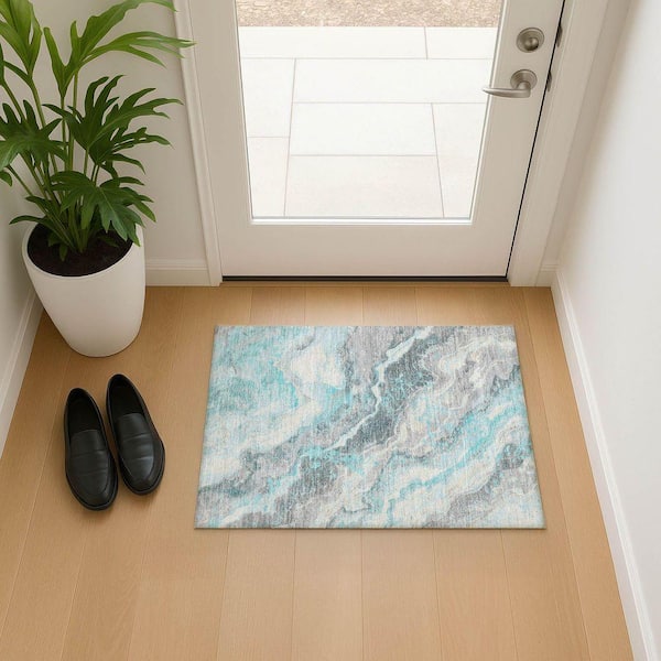 Mayfield Premium Machine Washable Abstract AMF1709 Teal 2 ft. x 3 ft. Area Rug