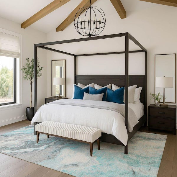 Mayfield Premium Machine Washable Abstract AMF1709 Teal 3 ft. x 4 ft. Area Rug