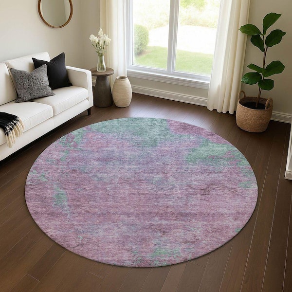 Mayfield Premium Machine Washable Abstract AMF1710 Lavender 8 ft. x 8 ft. Round Rug