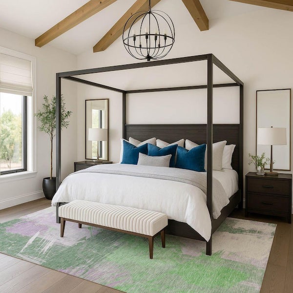 Mayfield Premium Machine Washable Abstract AMF1711 Green 9 ft. x 12 ft. Area Rug