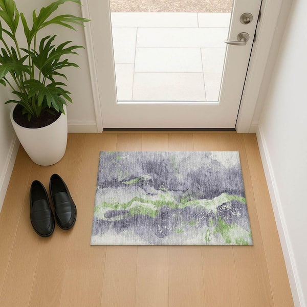 Mayfield Premium Machine Washable Abstract AMF1712 Lavender 2 ft. x 3 ft. Area Rug
