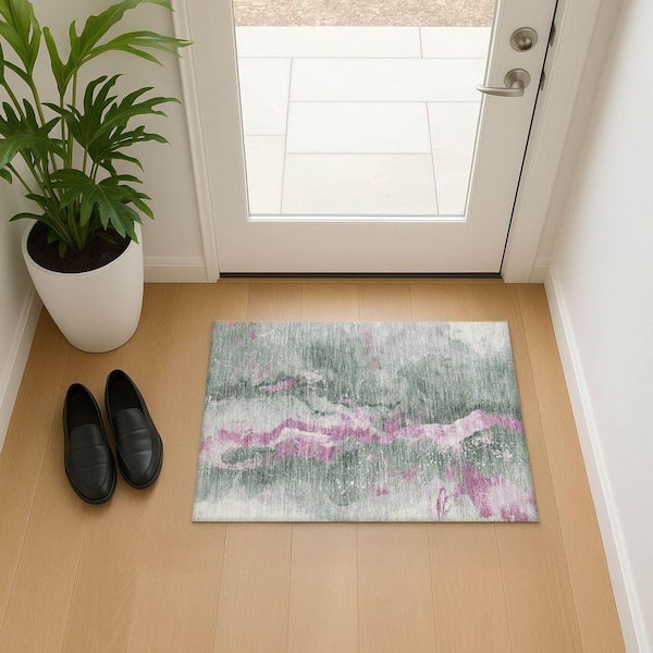Mayfield Premium Machine Washable Abstract AMF1712 Sage 2 ft. x 3 ft. Area Rug