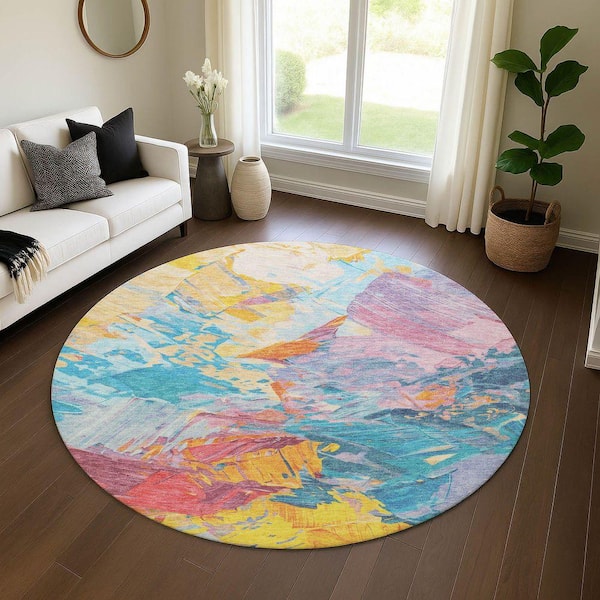Mayfield Premium Machine Washable Abstract AMF1713 Blue 8 ft. x 8 ft. Round Rug