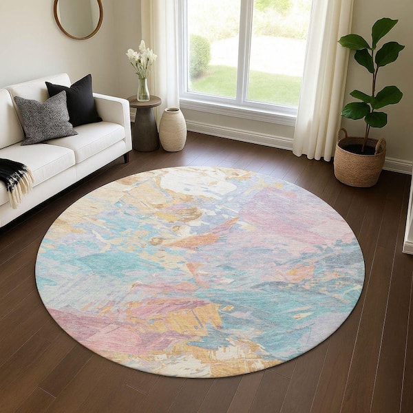 Mayfield Premium Machine Washable Abstract AMF1713 Teal 8 ft. x 8 ft. Round Rug