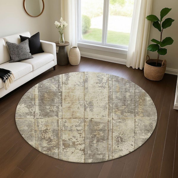 Mayfield Premium Machine Washable Abstract AMF1715 Beige 8 ft. x 8 ft. Round Rug