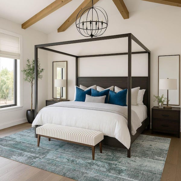 Mayfield Premium Machine Washable Abstract AMF1715 Teal 3 ft. x 4 ft. Area Rug