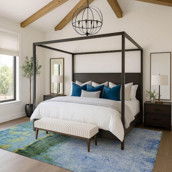 Mayfield Premium Machine Washable Abstract AMF1716 Blue 3 ft. x 4 ft. Area Rug