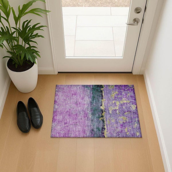 Mayfield Premium Machine Washable Abstract AMF1716 Plum 2 ft. x 3 ft. Area Rug