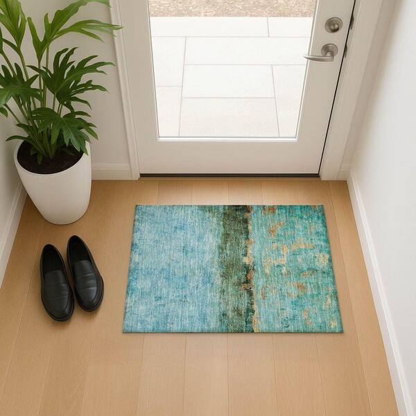 Mayfield Premium Machine Washable Abstract AMF1716 Teal 2 ft. x 3 ft. Area Rug