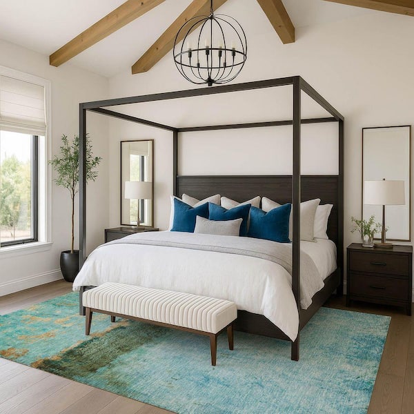 Mayfield Premium Machine Washable Abstract AMF1716 Teal 3 ft. x 5 ft. Area Rug