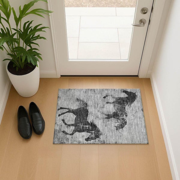 Mayfield Premium Machine Washable Abstract AMF1717 Gray 2 ft. x 3 ft. Area Rug