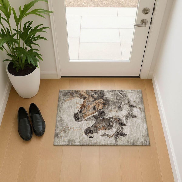 Mayfield Premium Machine Washable Abstract AMF1718 Beige 2 ft. x 3 ft. Area Rug