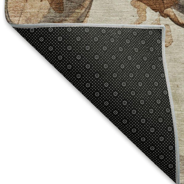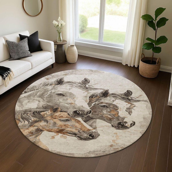 Mayfield Premium Machine Washable Abstract AMF1718 Beige 8 ft. x 8 ft. Round Rug