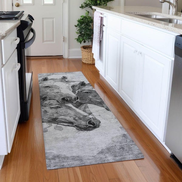 Mayfield Premium Machine Washable Abstract AMF1718 Gray 2 ft. 3 in. x 7 ft. 6 in. Runner Rug