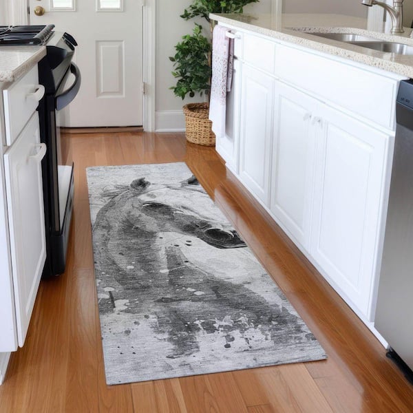 Mayfield Premium Machine Washable Abstract AMF1719 Gray 2 ft. 3 in. x 7 ft. 6 in. Runner Rug