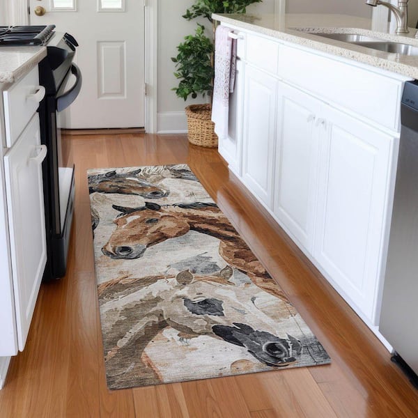 Mayfield Premium Machine Washable Abstract AMF1720 Beige 2 ft. 3 in. x 7 ft. 6 in. Runner Rug