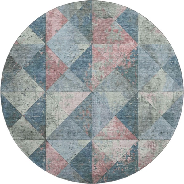 Mayfield Premium Machine Washable Abstract AMF1721 Denim 8 ft. x 8 ft. Round Rug