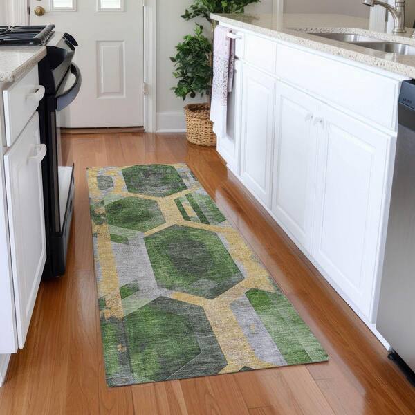 Mayfield Premium Machine Washable Abstract AMF1722 Green 2 ft. 3 in. x 7 ft. 6 in. Runner Rug