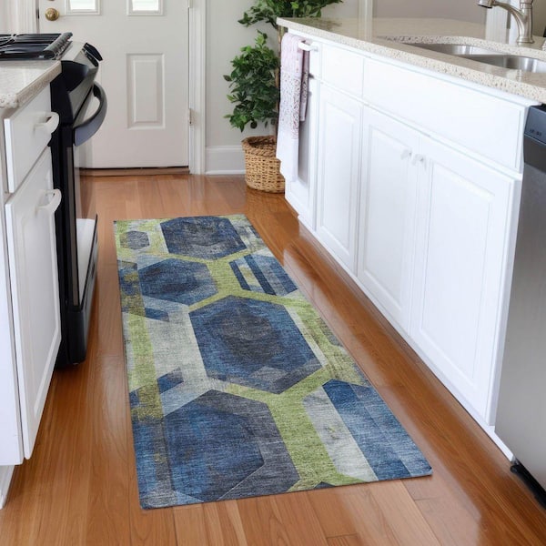 Mayfield Premium Machine Washable Abstract AMF1722 Navy 2 ft. 3 in. x 7 ft. 6 in. Runner Rug