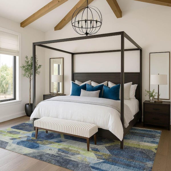 Mayfield Premium Machine Washable Abstract AMF1722 Navy 9 ft. x 12 ft. Area Rug