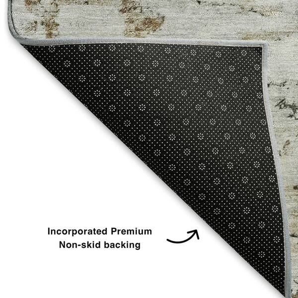 Mayfield Premium Machine Washable Abstract AMF1723 Beige 8 ft. x 8 ft. Round Rug
