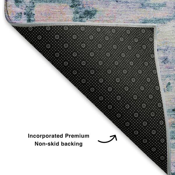 Mayfield Premium Machine Washable Abstract AMF1723 Blue 8 ft. x 8 ft. Round Rug