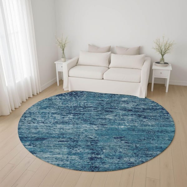 Mayfield Premium Machine Washable Abstract AMF1723 Denim 8 ft. x 8 ft. Round Rug