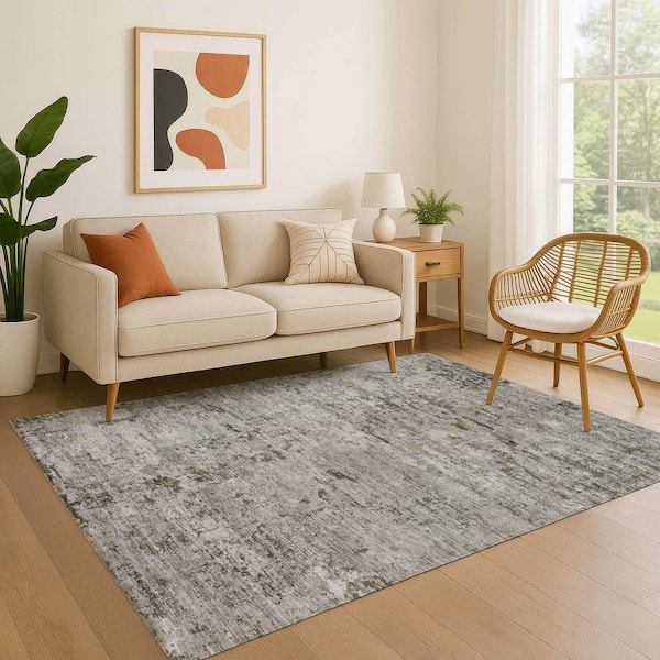 Mayfield Premium Machine Washable Abstract AMF1723 Pewter 5 ft. x 7 ft. 6 in. Area Rug